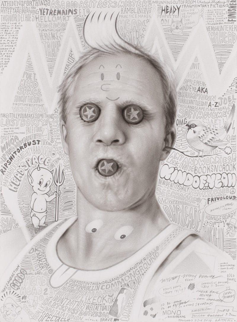 Laith McGregor spent a couple of months at HIAP’s studios in Suomenlinna, developing his unique portraits which combine meticulous drawing with text and the subconscious and bizarre.