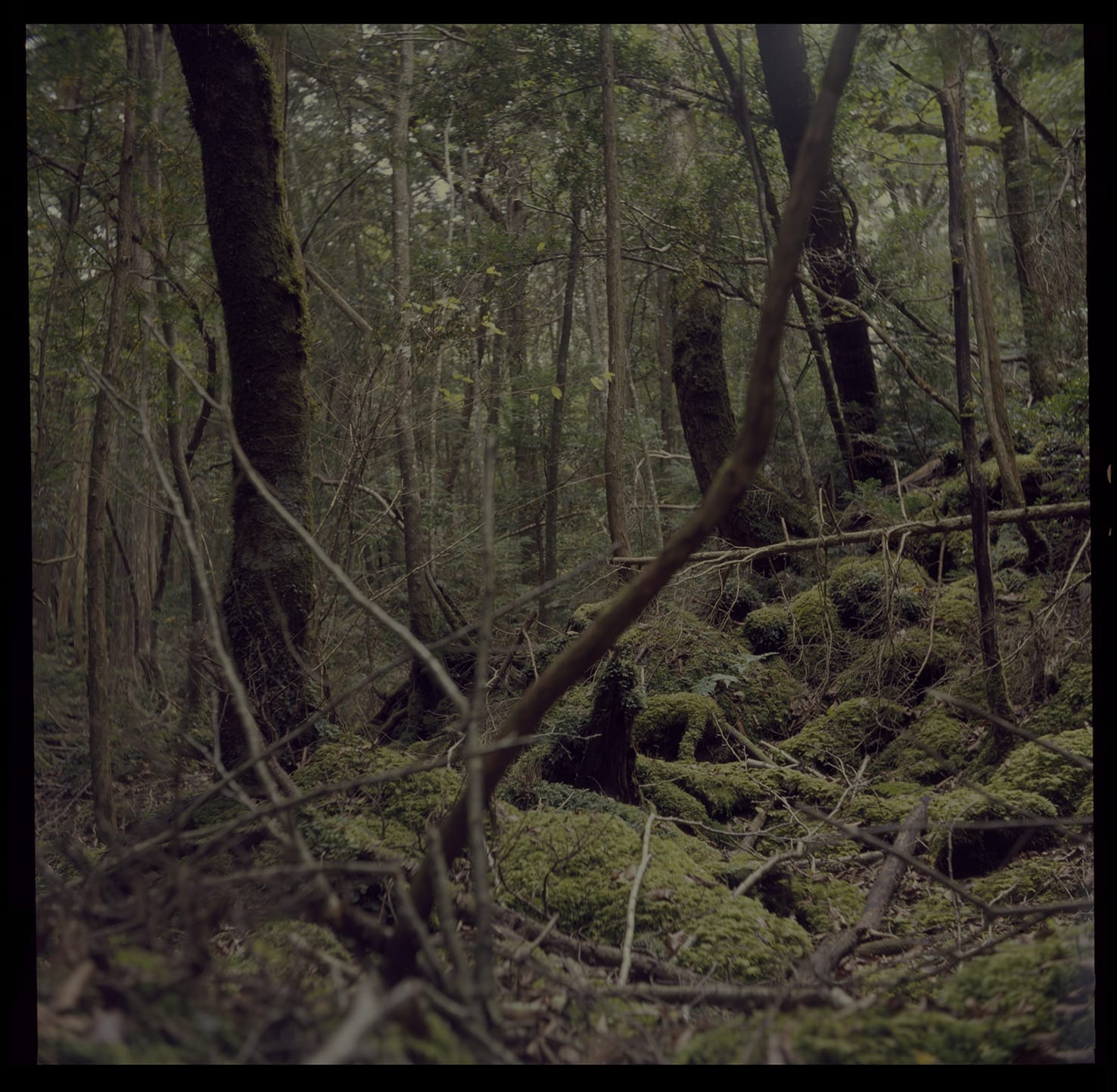 Emilia visited the forest of Aokihagara, Mount Fuji’s vast ‘Sea of Trees’, which is located a mere two-hour bus ride away from central Tokyo. The Mount Fuji area is a well-known tourist destination and the forest is visited by many because of the well known caves in this area. However, it is also home to ominous events: every year, many Japanese people go to the forest to take their own lives. A popular suicide spot, the stories of ghosts and haunting spirits existed before these more recent tragedies, but have increased with them.