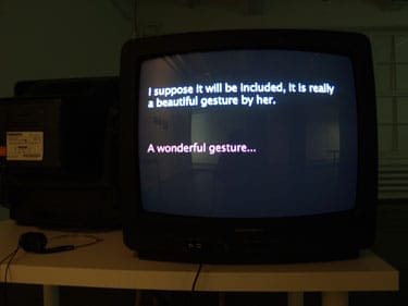 Pilvi Takala (b.1981, Helsinki) shows two works realized in 2008: The Messengers (installation) and The Angels (video). The Messengers is an installation created during Takala’s residency in Zagreb (2007/08), funded by FRAME. It is an intervention into Croatian media, more accurately a magazine called Story, specialising in celebrity news and gossip, and its fixation with local celebrity Vlatka Pokos. The basis of the piece is the idea of inverted gossip. Gossip can be any small detail about the life of someone famous as long as it portrays the person in a negative light. Instead of spreading juicy gossip, Takala sets out to report pieces of insignificant but positive acts whose value in scandalous terms is nil, yet when performed by a celebrity become newsworthy. These absurd little news items create a ‘rupture’ in the traditional tabloid formula through their lack of sensation and by being nothing more than a slightly naïve testament to people caring about each other.