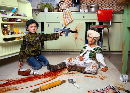 The series In the Playroom brutally shows that it is hard to build a protective bubble around children. The pieces reflect reality in horrifying way, but they can also be interpreted as fairy-tale scenes.