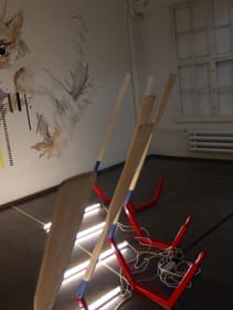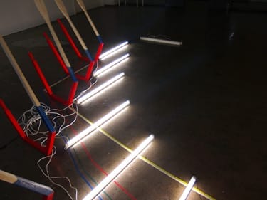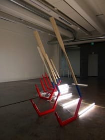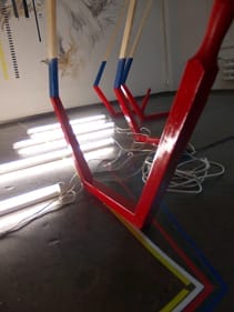 In the broad terms McCann’s work invites a re-consideration of our relationship to the world around us – a questioning of how this world constitutes us as subjects and how we, in turn, give this world form. More recently this examines, in particular, to what extent our understandings of the grand themes of modernity, globalisation and urbanisation are actually shared and experienced in common? This thought process is developed and channeled through making – a making that explores philosophical riddles/conundrums through seemingly random juxtapositions and spatial relationships. Practically speaking, this involves aspects of representation; the framing and construction of visual landscape through devices such as the use of the de-contextualised, vestigial modernist icon or the recasting of information as pure image.