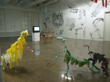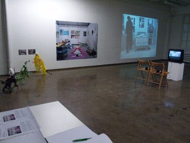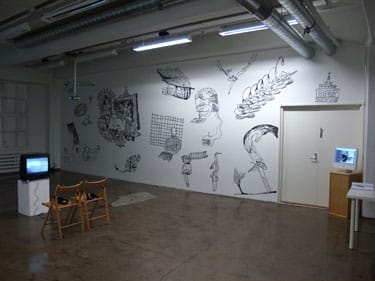 Post Post Post Studio features work by six young US-based artists. Organised by Chicago-based artist Carrie Schneider (b.1979) it is a homage to the aura of the artist’s atelier; a site for magic, transcendence, or divine failure. Schneider is herself currently in the middle of an artist’s residency at HIAP (Helsinki International Artist-in-residence Programme) in Finland. Thoughts about the utopic luxury and heart-wrenching reality of a studio practice confront her on a daily basis. In a time where artistic production is steeped in post-studio practices, relational aesthetics and the anti-form, much art made today still manifests the studio in the presence of labour, for example. Schneider feels it is an opportune moment to “take pause and reaffirm our belief in the awesomeness of the atelier.”