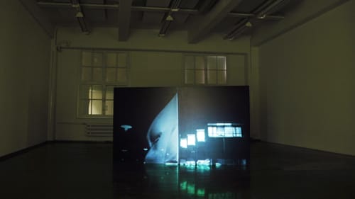 Niamh O’Malley presents a preview version of Flag, a new work produced during her residency at HIAP, which consists of a real-time video projection aligned with a large painted screen. The work is looped and silent. A camera slowly and steadily circles a flagpole, which stands central in the frame. On its axis a bare flag moves chaotically. It flickers and furls in a constant disruption and fulfillment of its form. The flag’s volatile visual plane fluctuates between translucent and solid, present and absent. Instead of flag as signal or sign it becomes flag as chronometer, marking time and responding to the wind with a frantic, kinetic impulse, in an eternal return, or a vicious circle.
