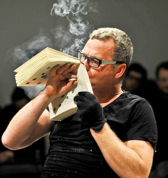 In his work Joakim Stampe deals with issues in contemporary society that touch him, whether it is direct political topics like the murder of the Swedish Prime Minister Olof Palme, or George W Bush’s’ “war on terrorism”. Or for that matter on issues like censorship, the art scene and its star system, or more personal subject matter, Joakim Stampe is basically a storyteller, through the action and the human identification in performance art.